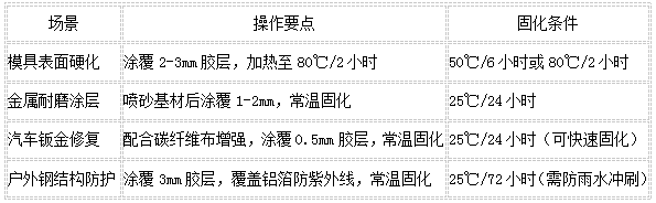 ●模具硬化:2-3mm(需分层涂覆,每层≤1mm)。